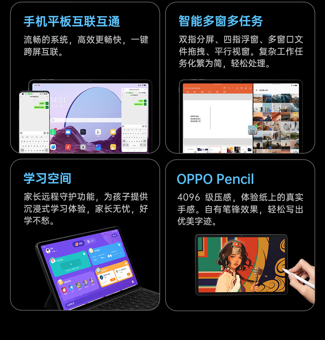 商品名称:OPPO Pad平板 11英寸 2.5K 120Hz高刷护眼屏 骁龙870 8GB+256GB 耀夜黑 娱乐游戏 学生学习教育 办公平板电脑