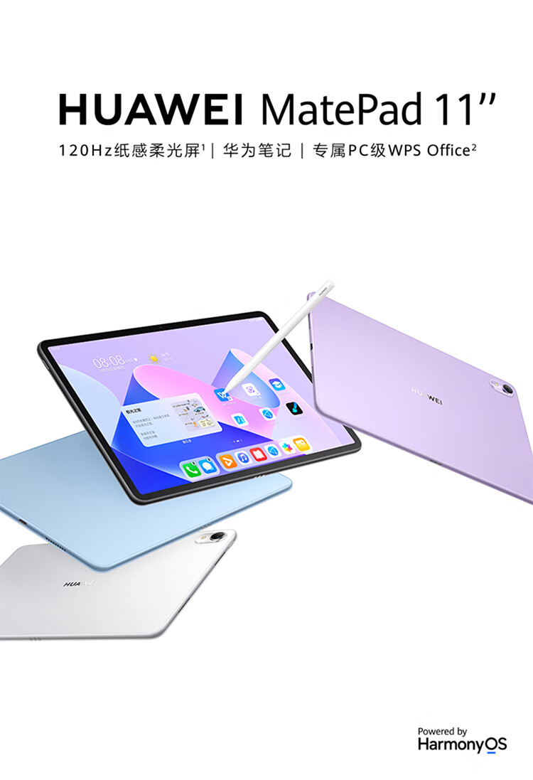 华为HUAWEI MatePad 11英寸最新款 柔光版120Hz高刷全面屏 HarmonyOS 娱乐学习平板电脑8+256GB WIFI晶钻白