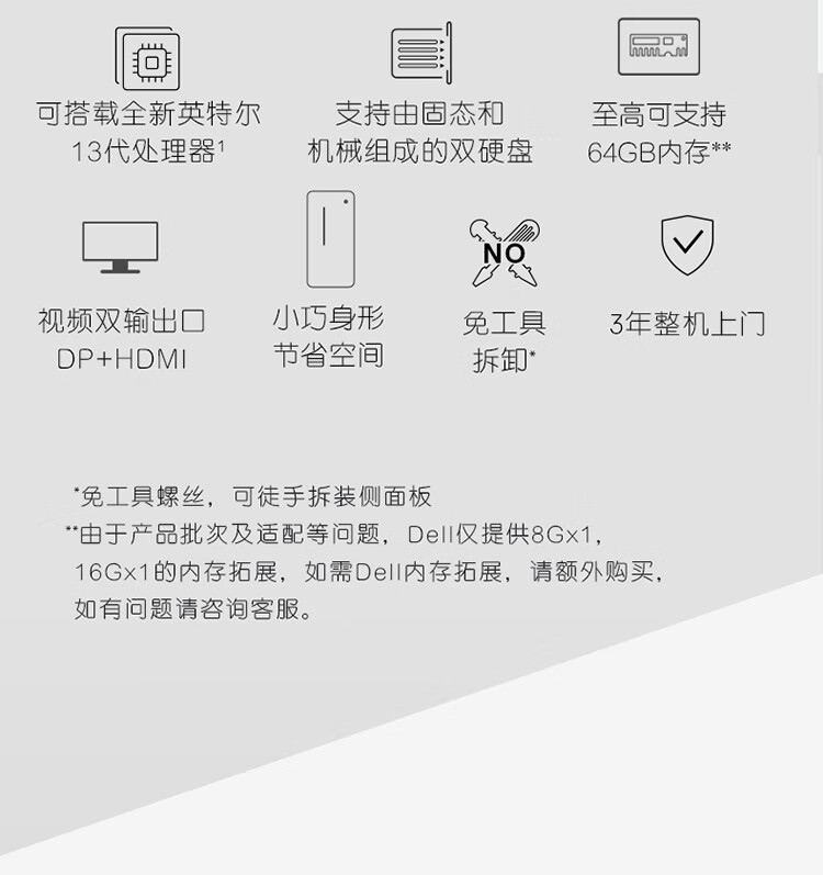 戴尔(Dell)成就3020台式机电脑主机 商用办公电脑整机 (13代i5-13400 16G 1TBSSD)23.8英寸